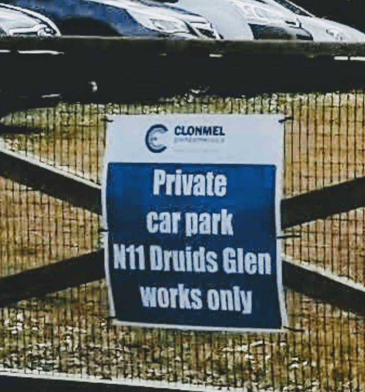 This land is owned by Tudor Homes and they have confirmed that the cars parked, are cars belonging to contractors working on behalf of DLR County Council, who are constructing the new Druids Glen Road within the Cherrywood SDZ.