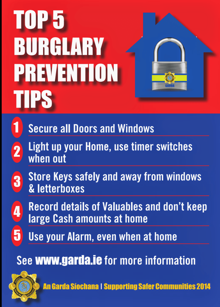 For more information on how to secure your home visit: https://www.garda.ie/en/Crime-Prevention/Securing-your-home/