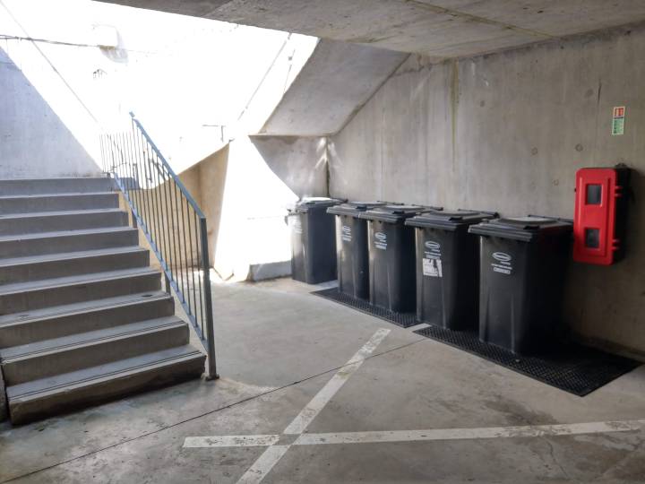 The bottle bank in the underground car park has been decentralised and relocated under each of the corner stairwells opposite the vehicular entrance to the car park.