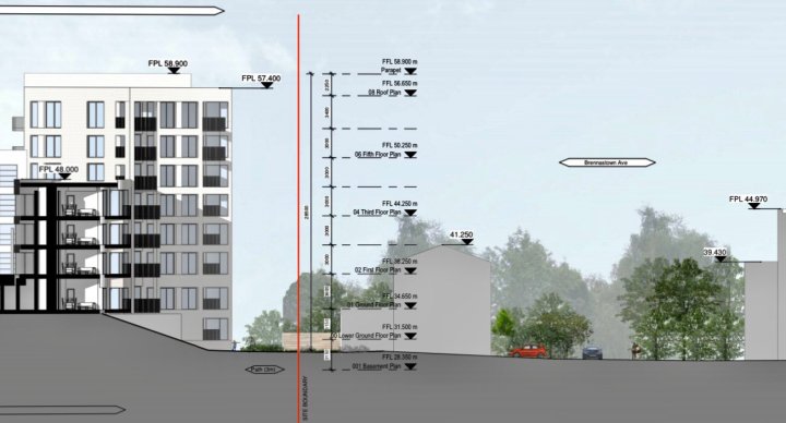 The planned development consists of 342 residential units, with a mix of duplex units and apartment blocks up to eight storeys high
