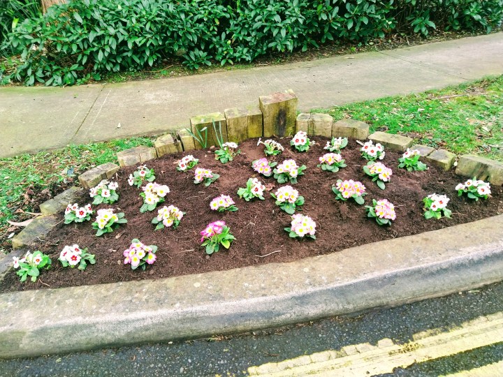 We also planted primroses in the little bed at the entrance to the development.