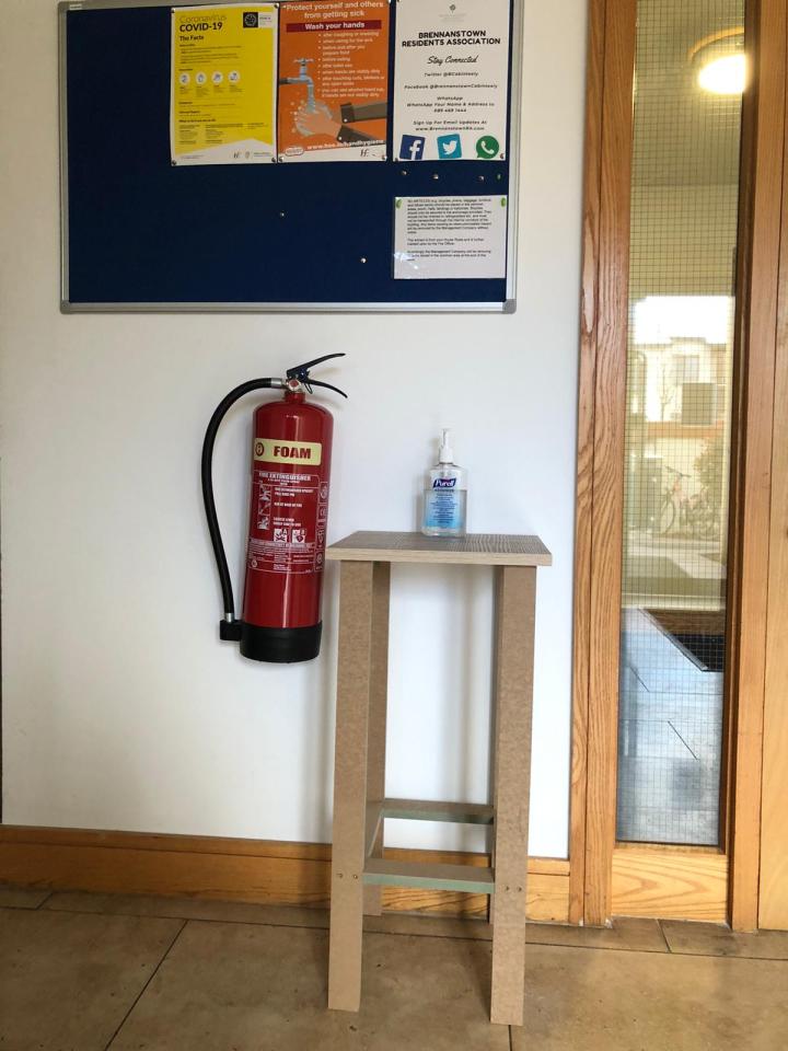 They’ve also arranged for sanitizer Station in the lobby of the building. The table was built by our committee member Mark. We’ve placed a table in each apartment block, if residents would like to set up something similar in their block.