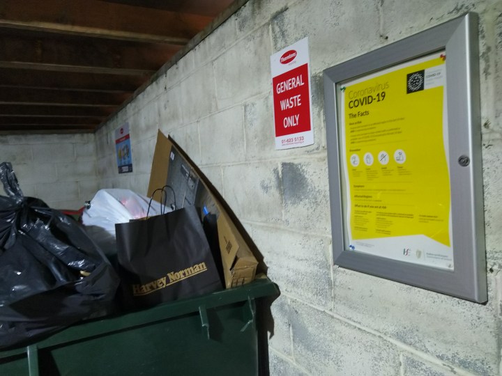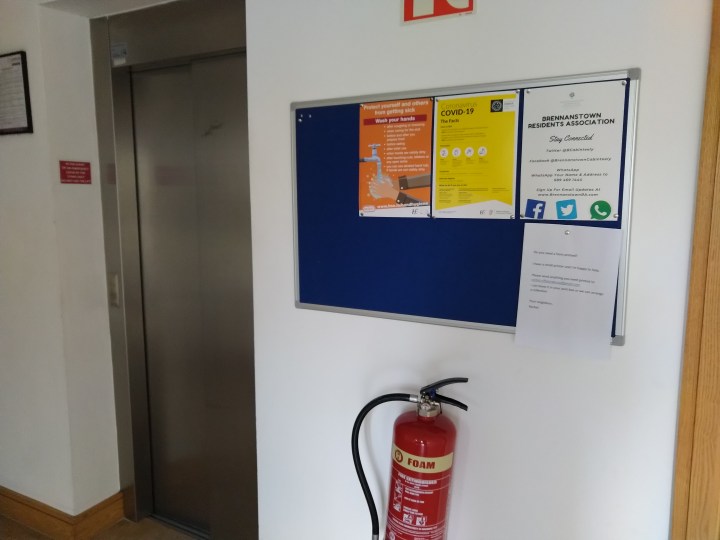 The residents association committee have printed a number of HSE Covid-19 posters and placed them in the lobby of each apartment block and the bin sheds.