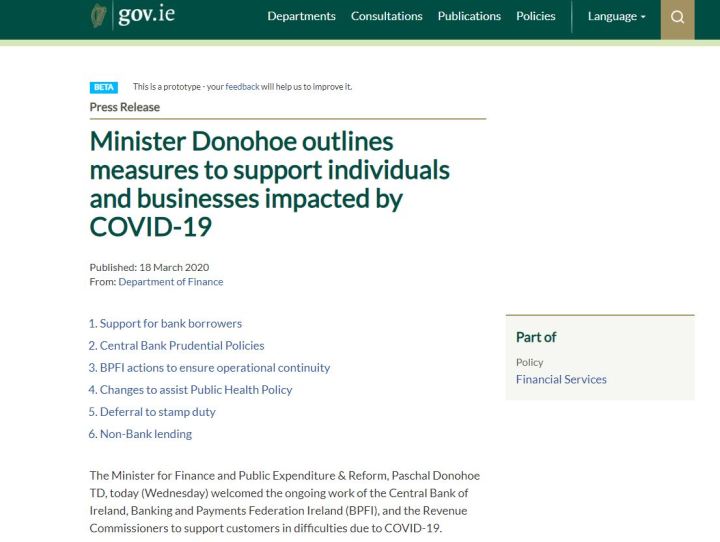 Minister Paschal Donohoe outlines measures to support individuals and businesses impacted by COVID-19 Details here