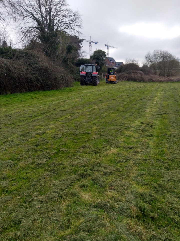 In the next couple of days Dún Laoghaire Rathdown County Council Parks Dept will be on site and planting the trees on the parkland in front of the apartment blocks on either side of Cabinteely Stream. They expect to finished by Saturday.