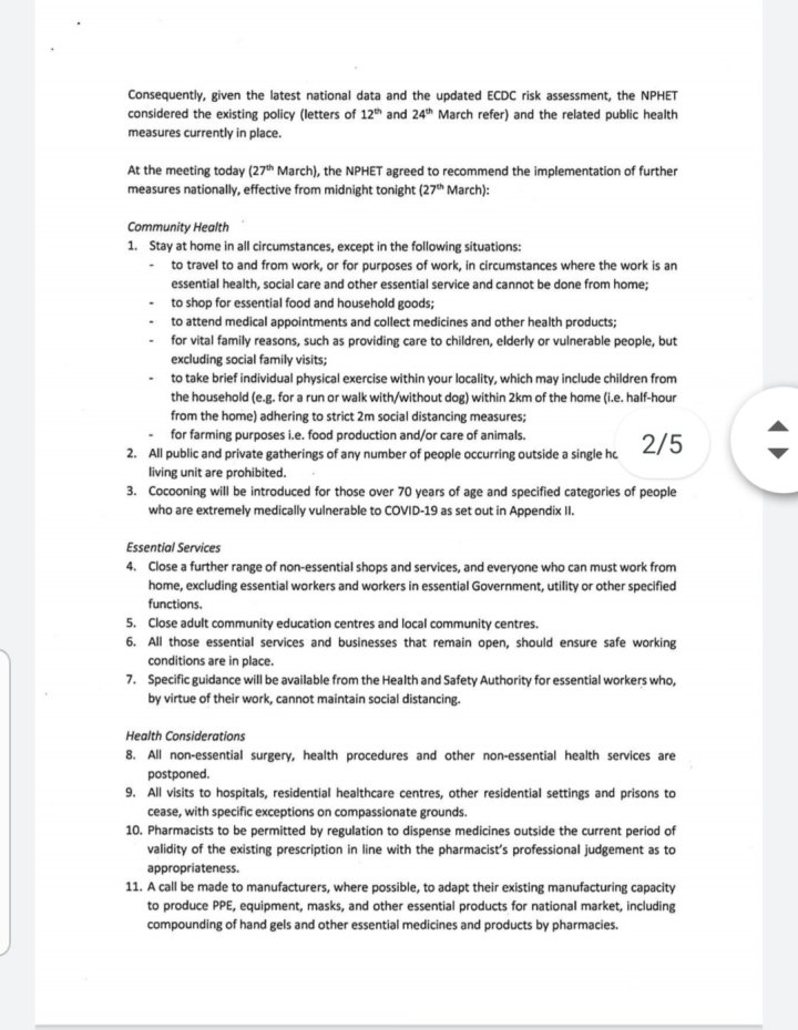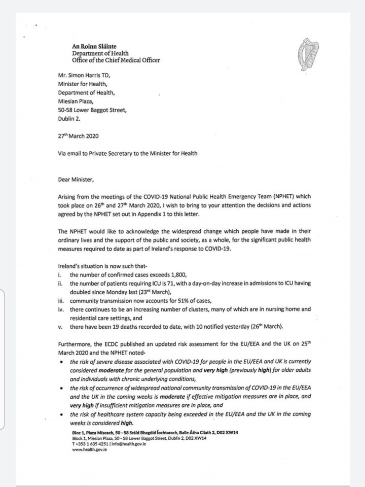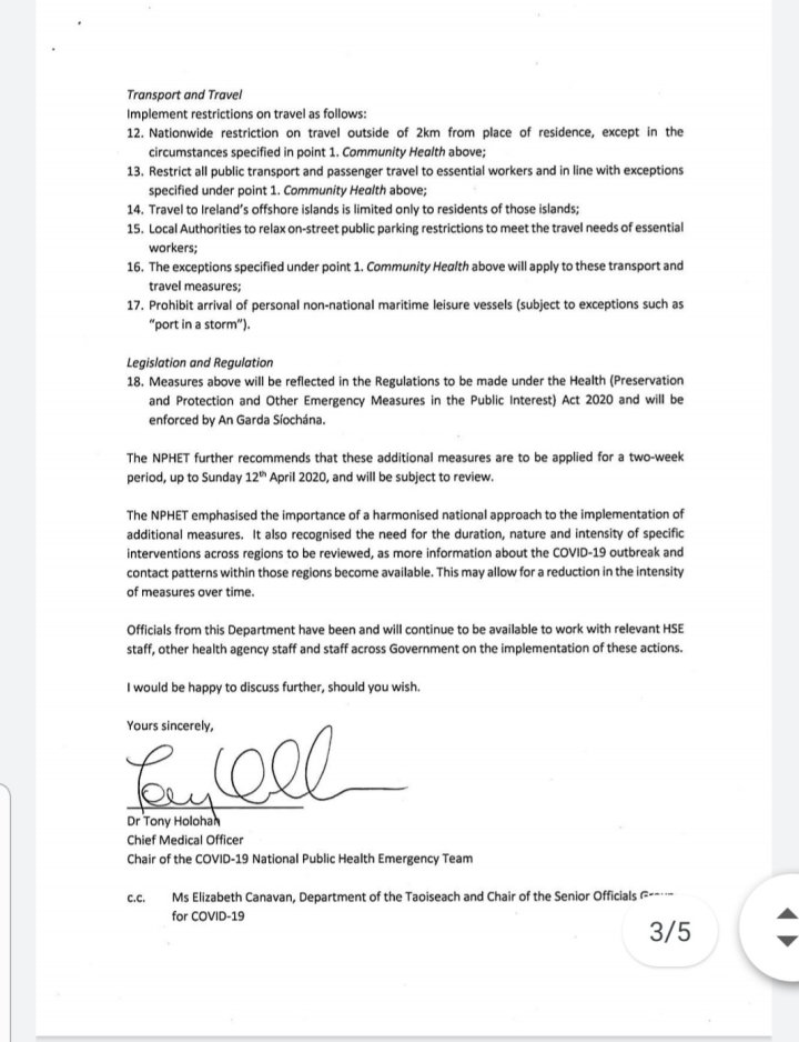 Below is a letter to Minister Simon Harris from the Chief Medical Officer Tony Holohan recommending the new restrictions.