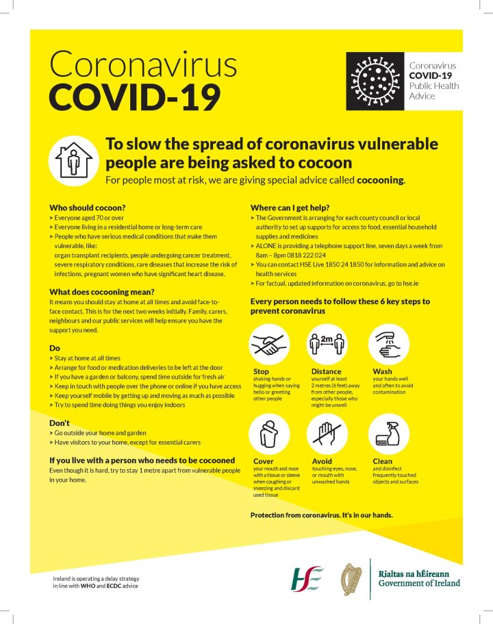 To ensure that elderly and vulnerable members of the community have the support they need Dún Laoghaire Rathdown County Council have setup a #COVID19 Community Helpline with a dedicated phone line at 01 271 3199 where teams are available to help and support the at risk elderly, vulnerable & isolated, particularly those in need of receiving essential services.