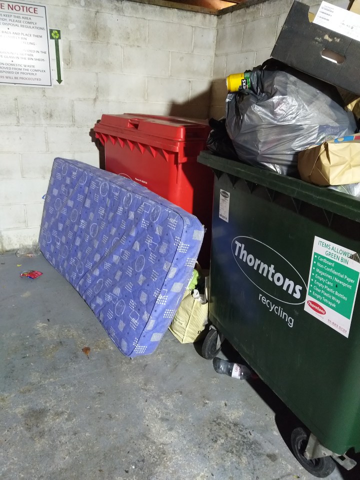 Last night a mattress was dumped in the bin shed at Brennanstown Court / Avenue. This is the second mattress dumped in this bin shed this week.