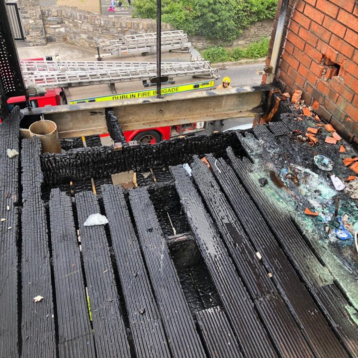 The result of a balcony fire in an apartment complex (Dublin Fire Brigade)