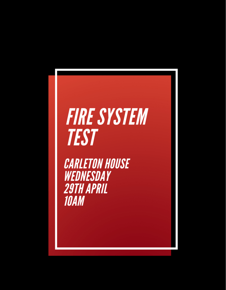 The management company have informed us that a fire safety contractor will be carrying out a fire alarm test in Carleton House next Wednesday 29th at 10am.