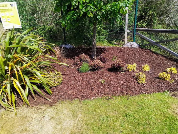 We weeded the flowerbeds at either side of the ramp, watered all the plants and spread two tonnes of mulch.