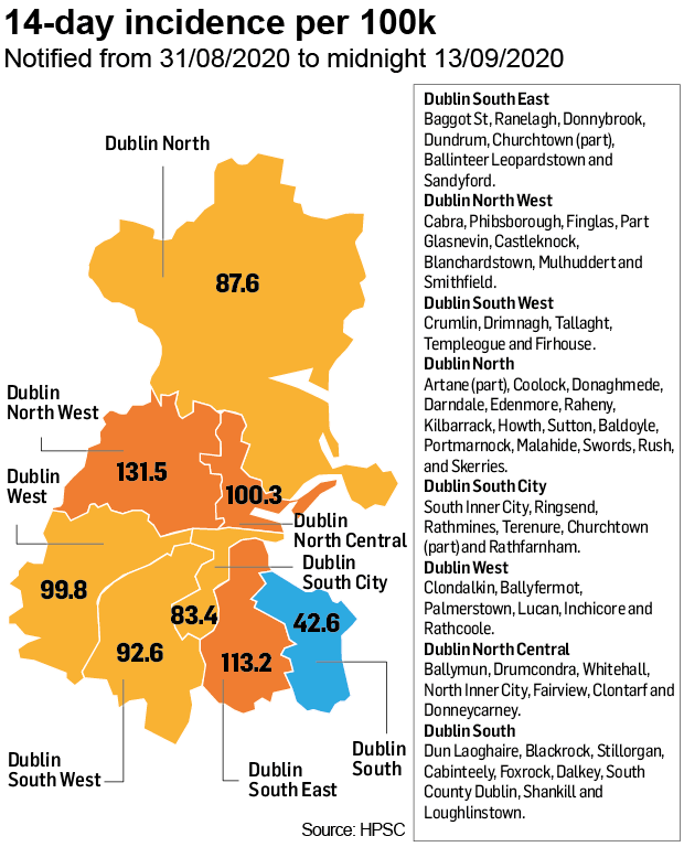 – People in Dublin should limit travel outside the region and meet only one other household when outside the county.