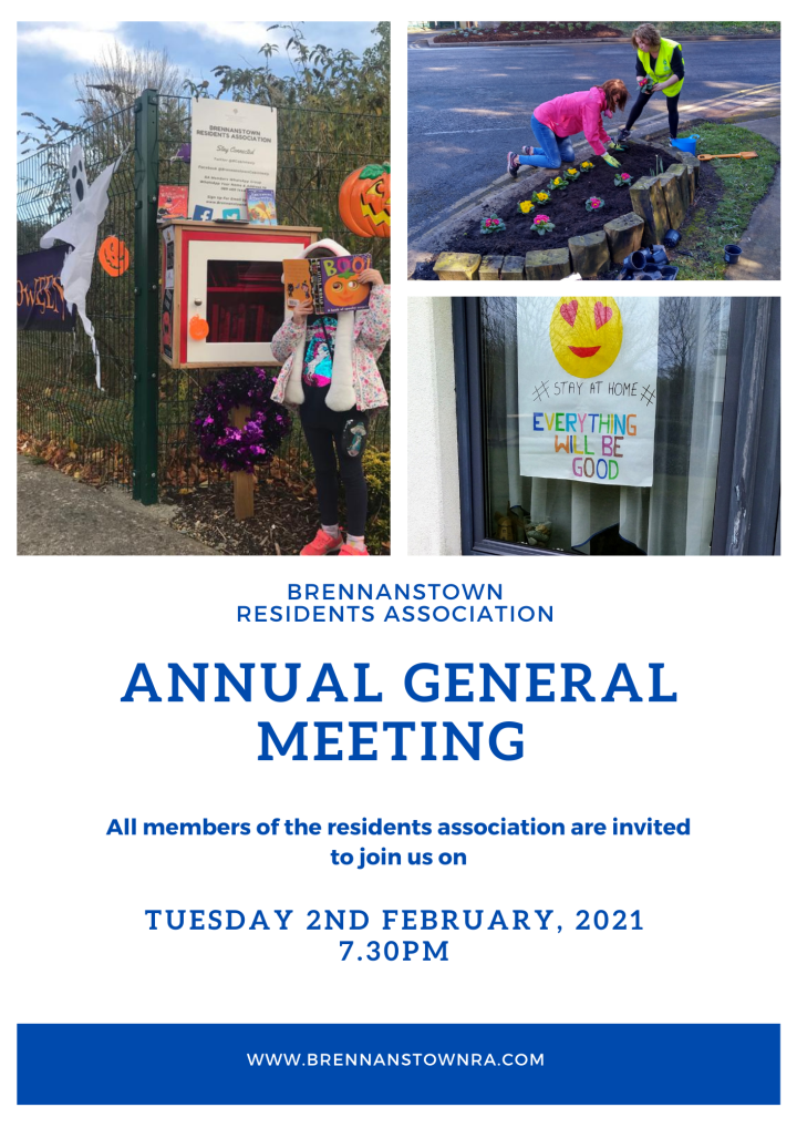 The Brennanstown Residents Association AGM will take place on Tuesday 2nd February, 730pm.