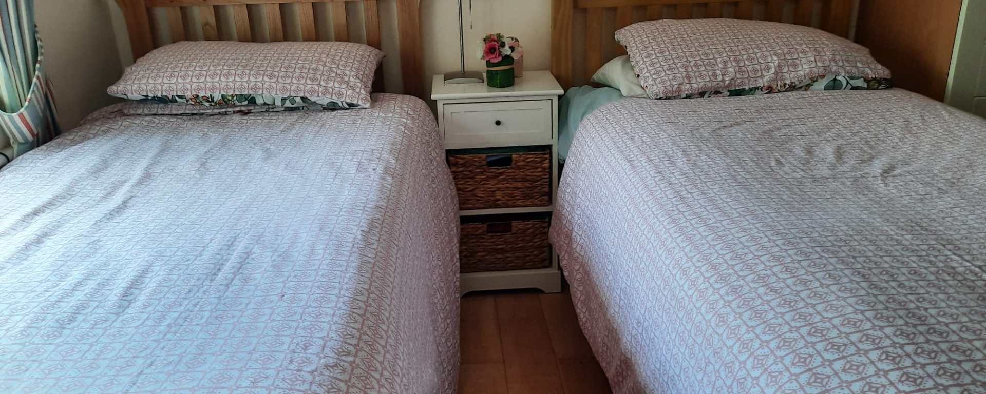 A resident is offering two single beds (not matching) with new mattress to a good home, for free.