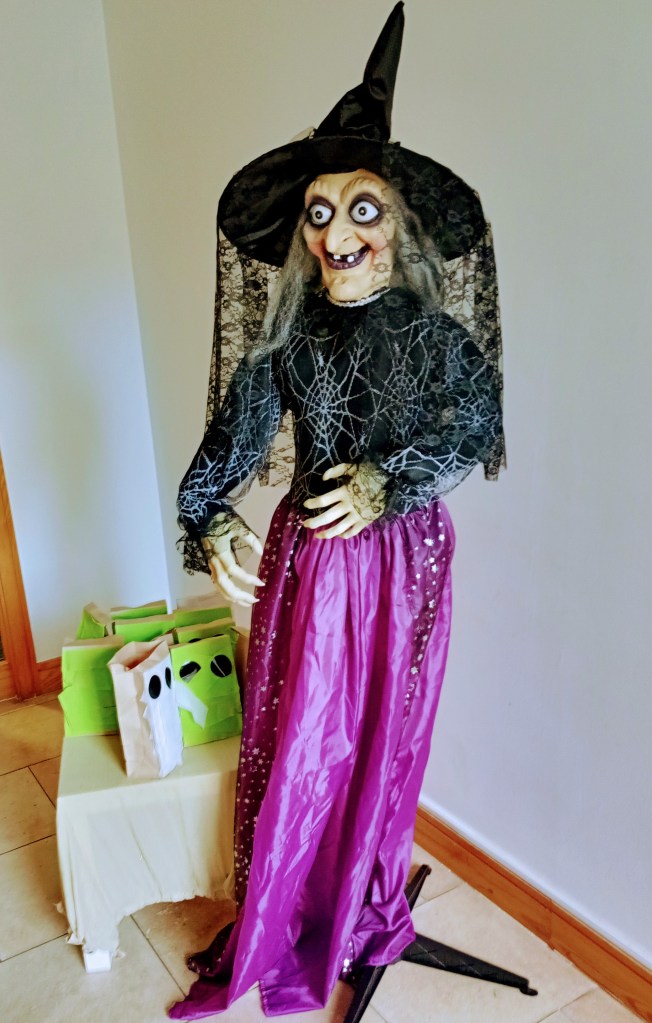 The residents of Le Hunt House had some fun last night, with goody bags for trick or treaters in the lobby watched over by the Wicked Witch of Le Hunt House.