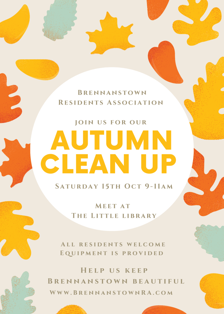 Our autumn clean up will take place this Saturday 15th October between 9am – 11am.